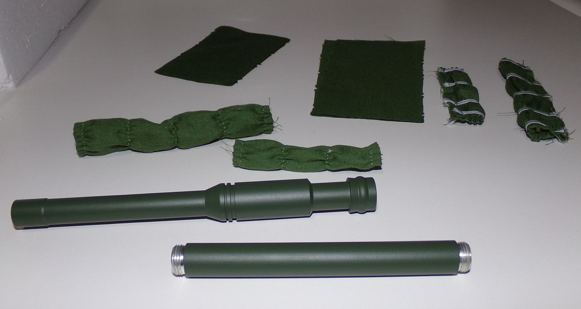 Barrel is actually 3 pieces. Comes with extra material and covers.